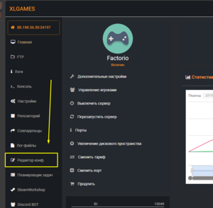 - Откройте панель управления вашим сервером Factorio.